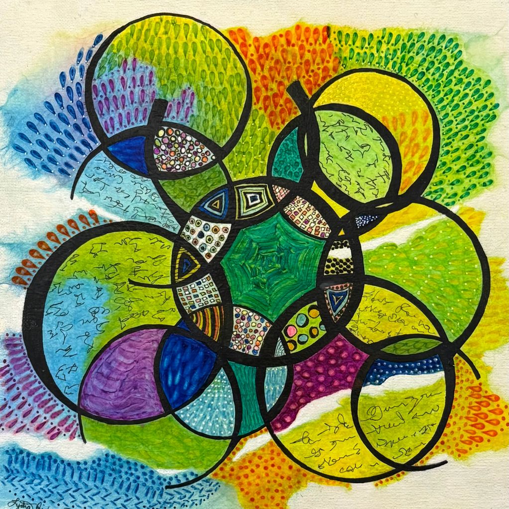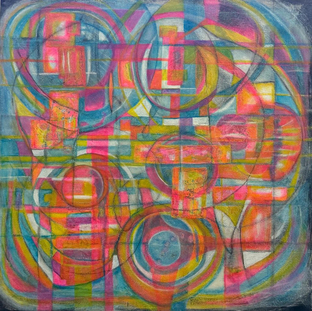 THE LIGHT FLOWS THROUGH - Acrylic, oil pastels, soft pastels, on canvas. 36" x 36" POR